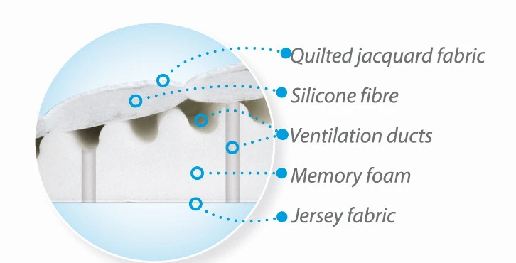 Het thermoplastisch schuim dat in het kussen zit verwerkt past zich aan de lichaamstemperatuur van jouw kleintje aan. Daarnaast is het kussen voorzien van twee soorten ventilatie wat ervoor zorgt dat overmatige transpiratie van je kindje wordt geminimaliseerd. Het zachte kussensloop kan eenvoudig worden verwijderd en gewassen.