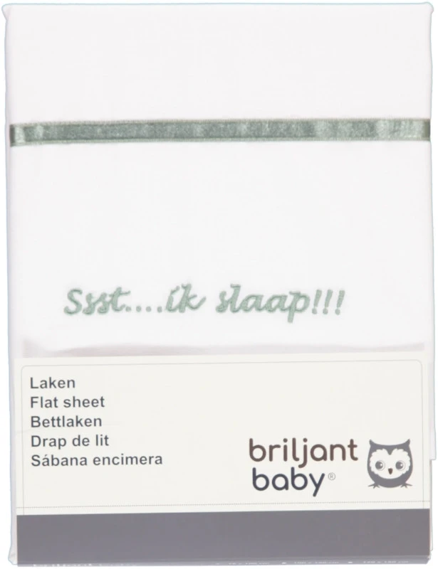 Je kleintje komt helemaal tot rust zodra hij/zij onder dit prachtige ledikantlaken van Briljant ligt. Dit lakentje is volledig wit van kleur met zandkleurige bies aan de bovenkant en de geborduurde tekst ‘Sttt… Ik Slaap!’ wat het lakentje leuk afmaakt!