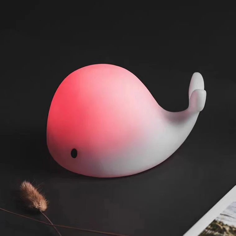 Het dolfijn nachtlampje geeft 9 verschillende kleuren: rood, geel, groen, blauw, paars in verschillende tinten. Door op het hoofd van de dolfijn te tikken verander je de kleur, zo kan je kleine steeds opnieuw kiezen welke kleur de dolfijn moet zijn.