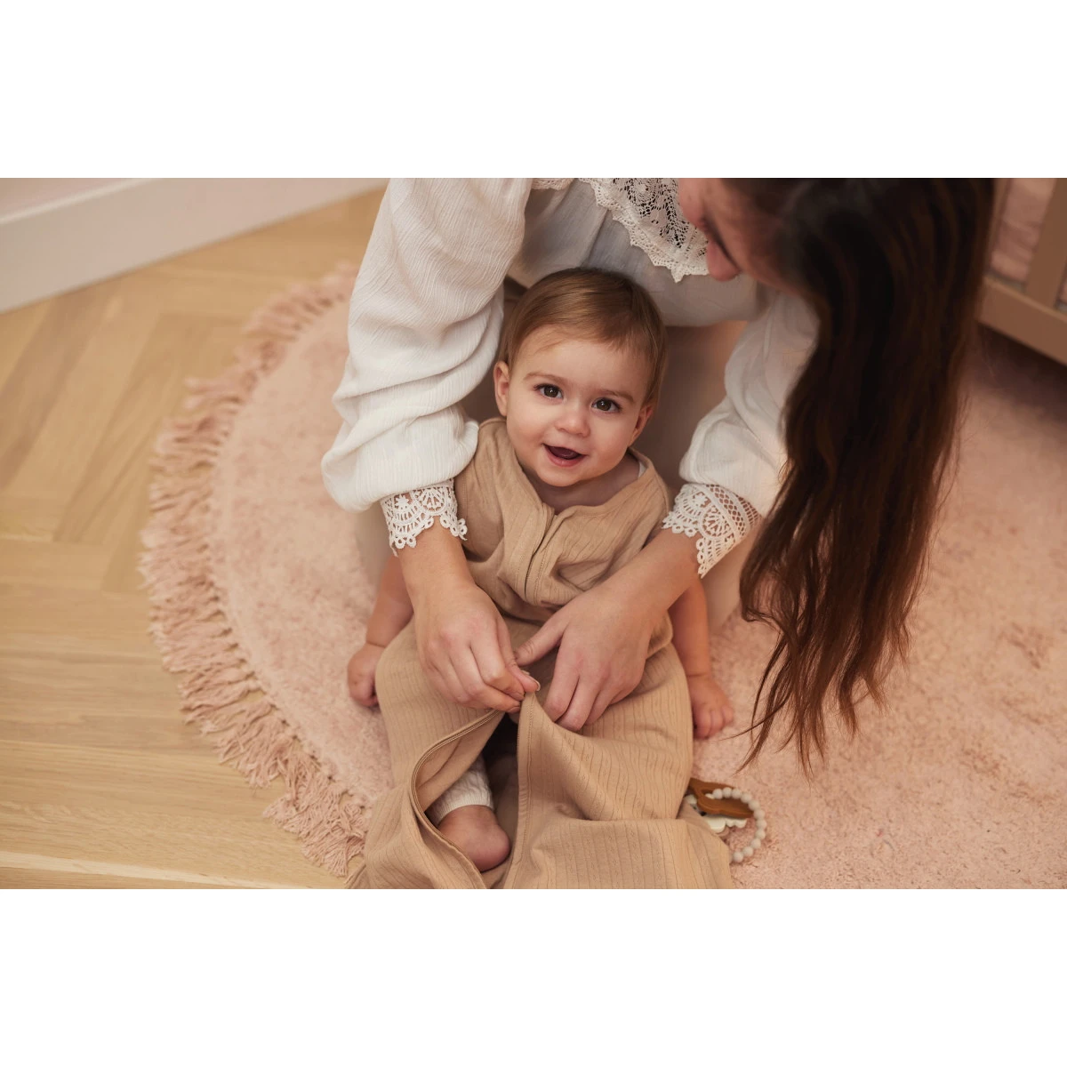 De slaapzak is voorzien van een handige rits zodat bij eventuele ongelukjes je kleintje er weer snel uit is en verschoond kan worden. De rits sluit naar beneden toe, zodat je kindje niet zelf de rits kan openen of ongemakkelijk kan komen te liggen. Daarnaast mag de slaapzak gestreken worden en is hij machine wasbaar op 40°C. Sluit de rits voor het wassen.
