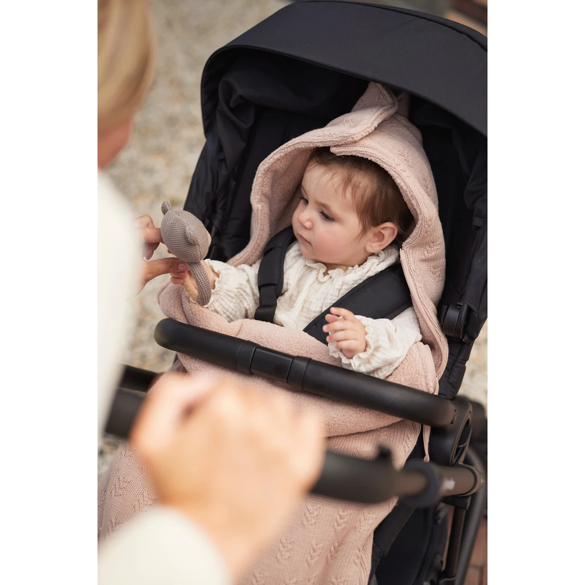 Deze comfortbag komt uit de Grain Knit collectie van Jollein en heeft een gebreid patroontje aan de buitenkant en zachte fleece aan de binnenkant. Daarnaast heeft de voetenzak een capuchon die je kan dicht maken door middel van drukknoopjes. Zo krijgt je kindje het niet koud tijdens de reis.
