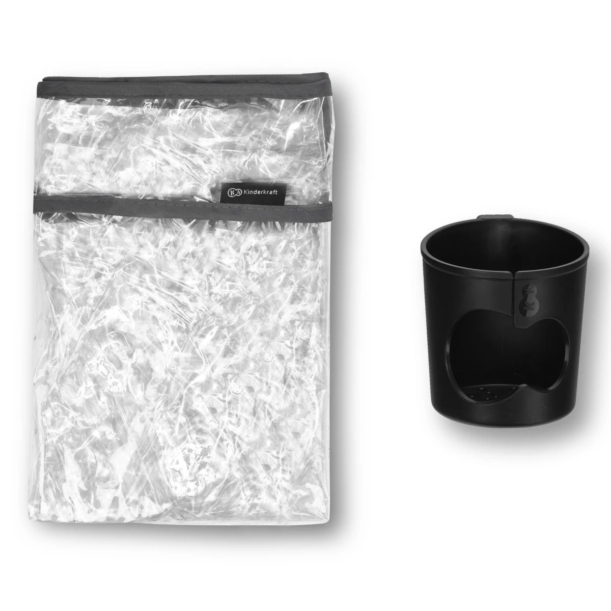 Regenhoes, boodschappenmand, bekerhouder, klamboe