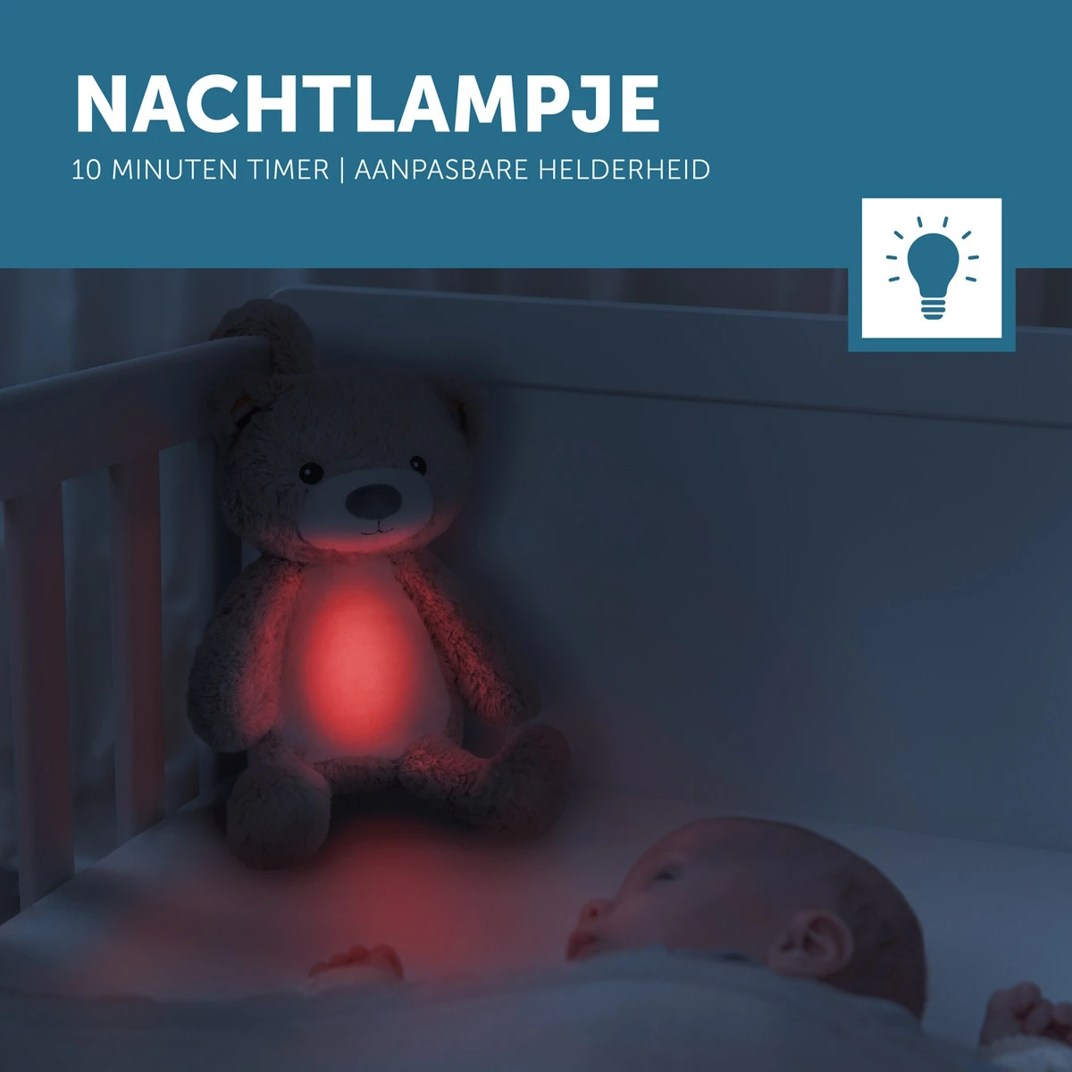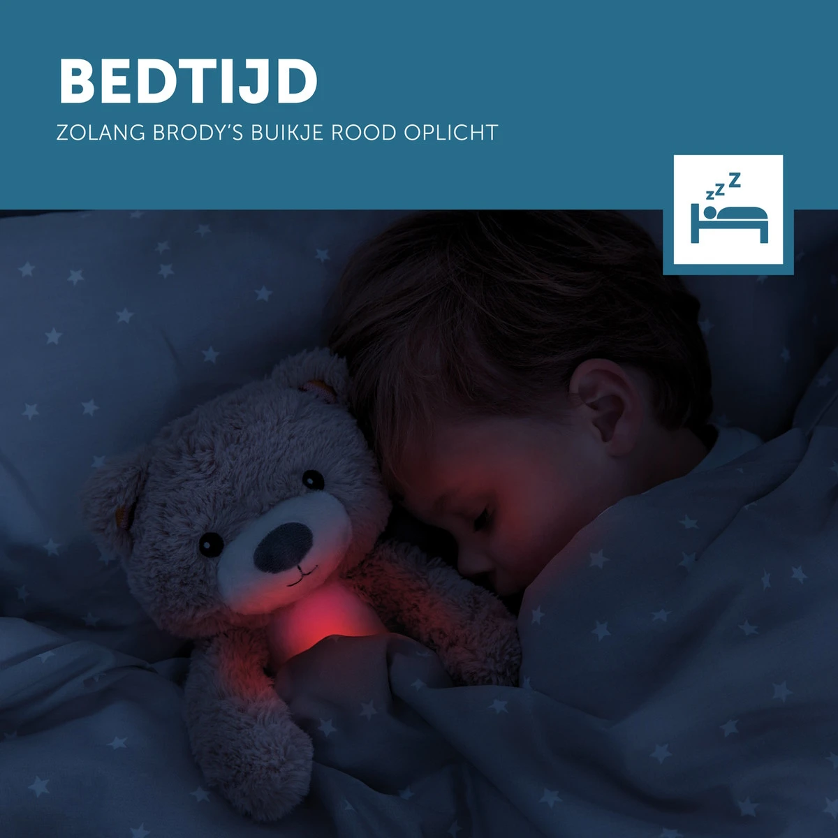 Is het geen schatje, die Brody van Zazu? Deze vrolijke vriend is veel meer dan een normale knuffelbeer. Brody de beer is namelijk een slaaptrainer, nachtlampje en muziekdoosje in één!